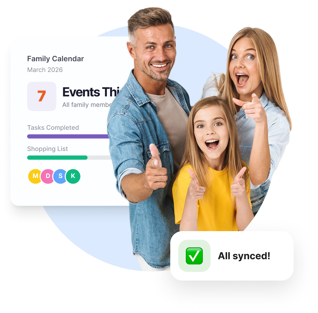 School events, doctor appointments, and activities are scattered across texts, sticky notes, and various apps. Important dates often slip through the cracks, leaving everyone unsure of who should be where.
